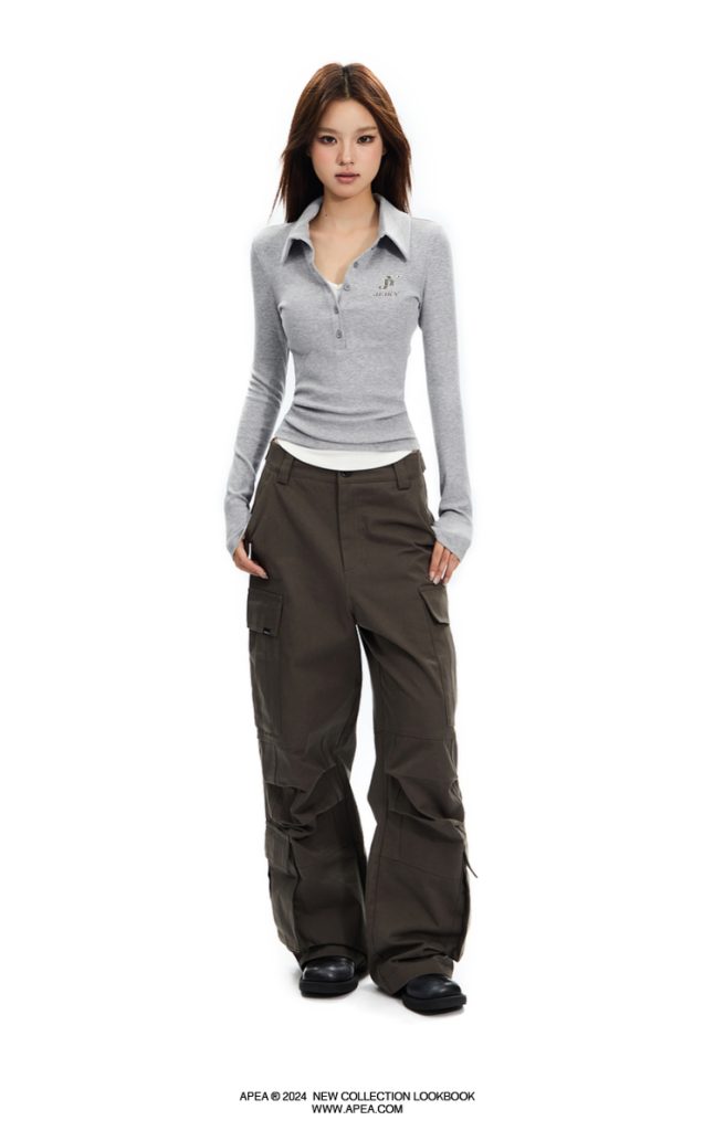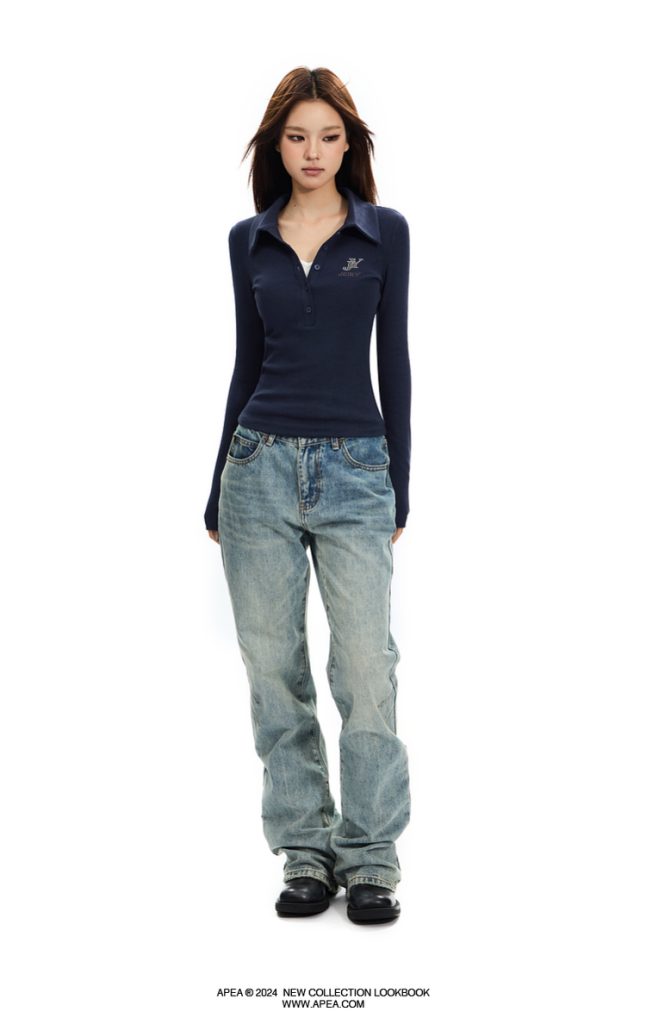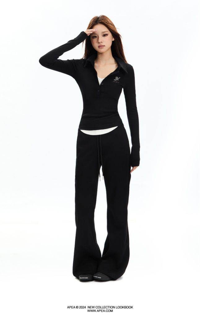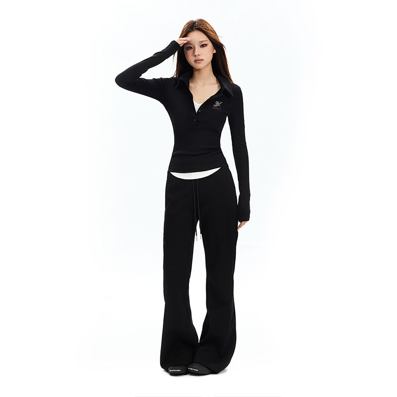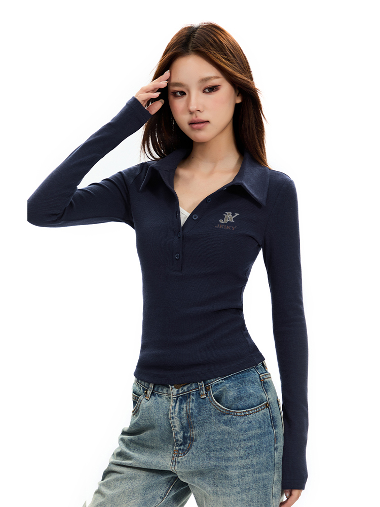 JY JEIKY Henley collar black fake two-piece long-sleeved T-shirt for women