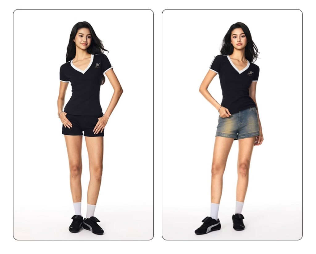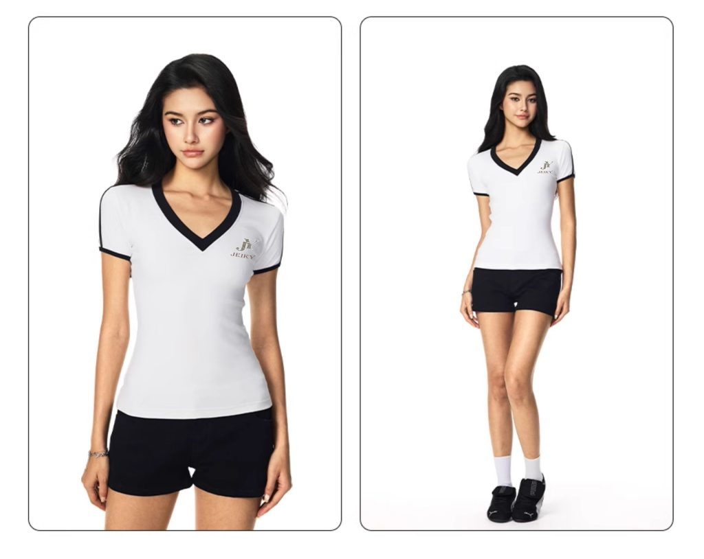 JY JEIKY Retro hot girl V-neck contrast color short-sleeved T-shirt women’s summer sports top
