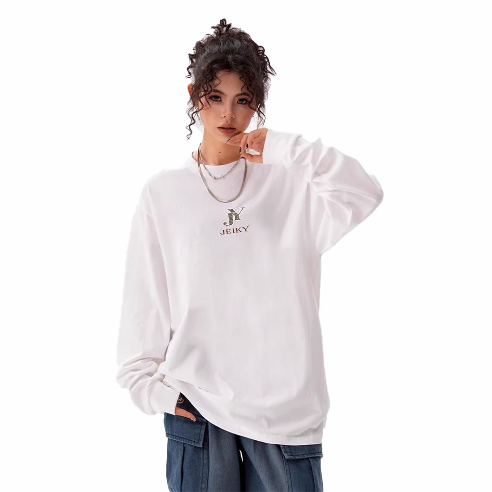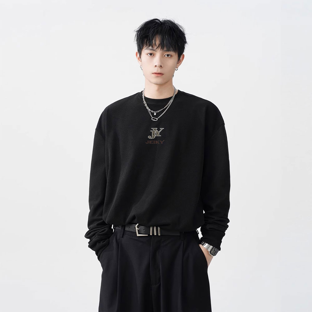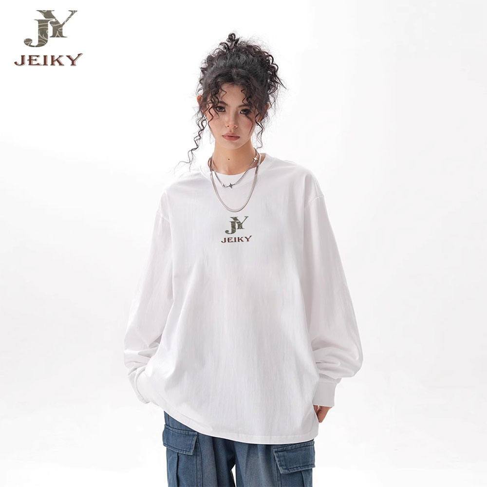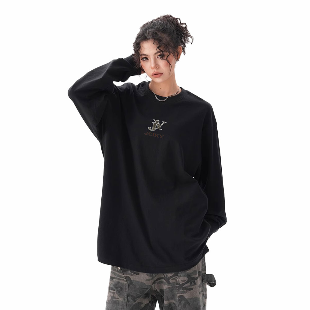 JY JEIKY Loose casual bottoming shirt for men and women, solid color round neck long sleeve T-shirt
