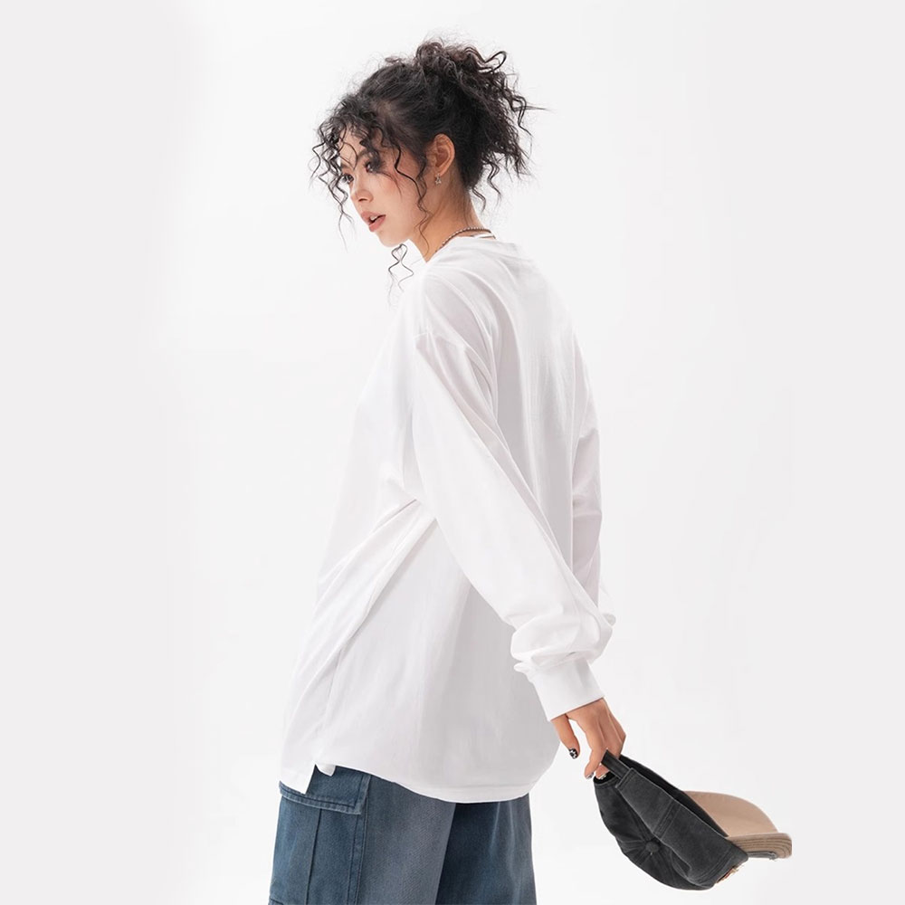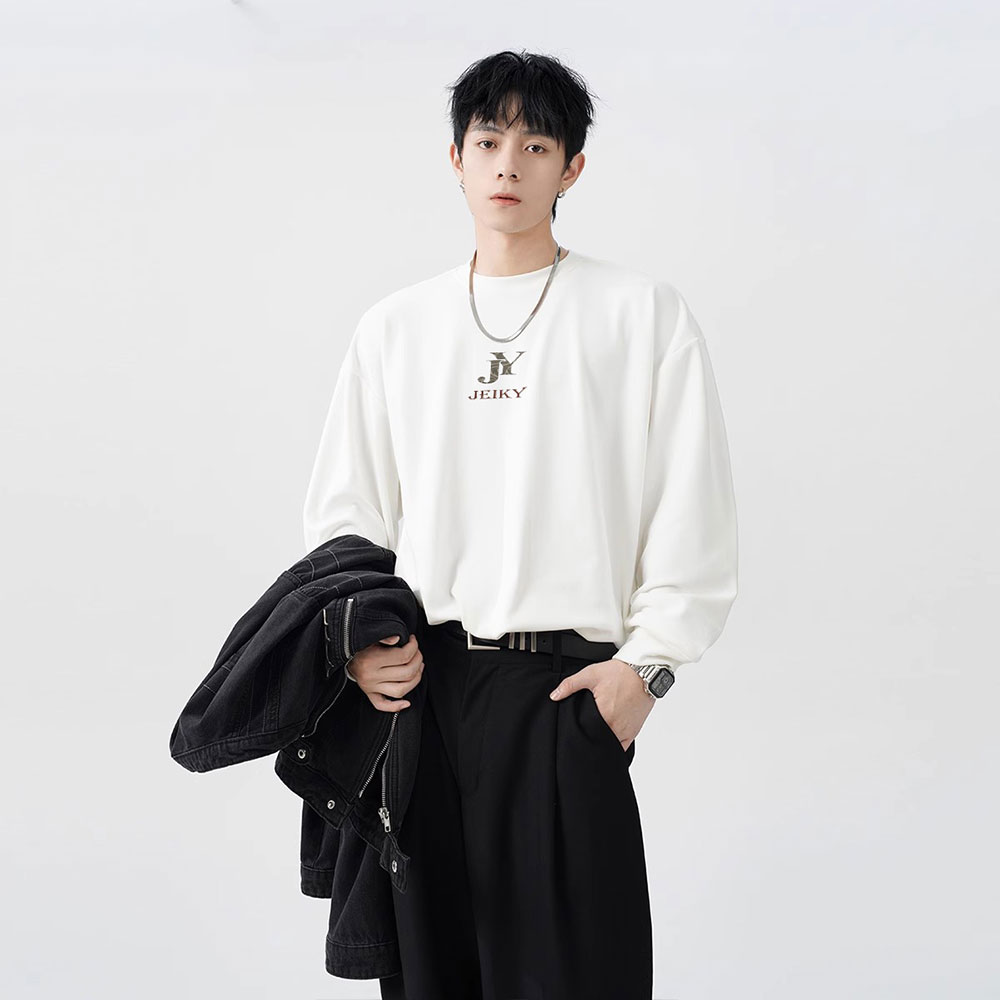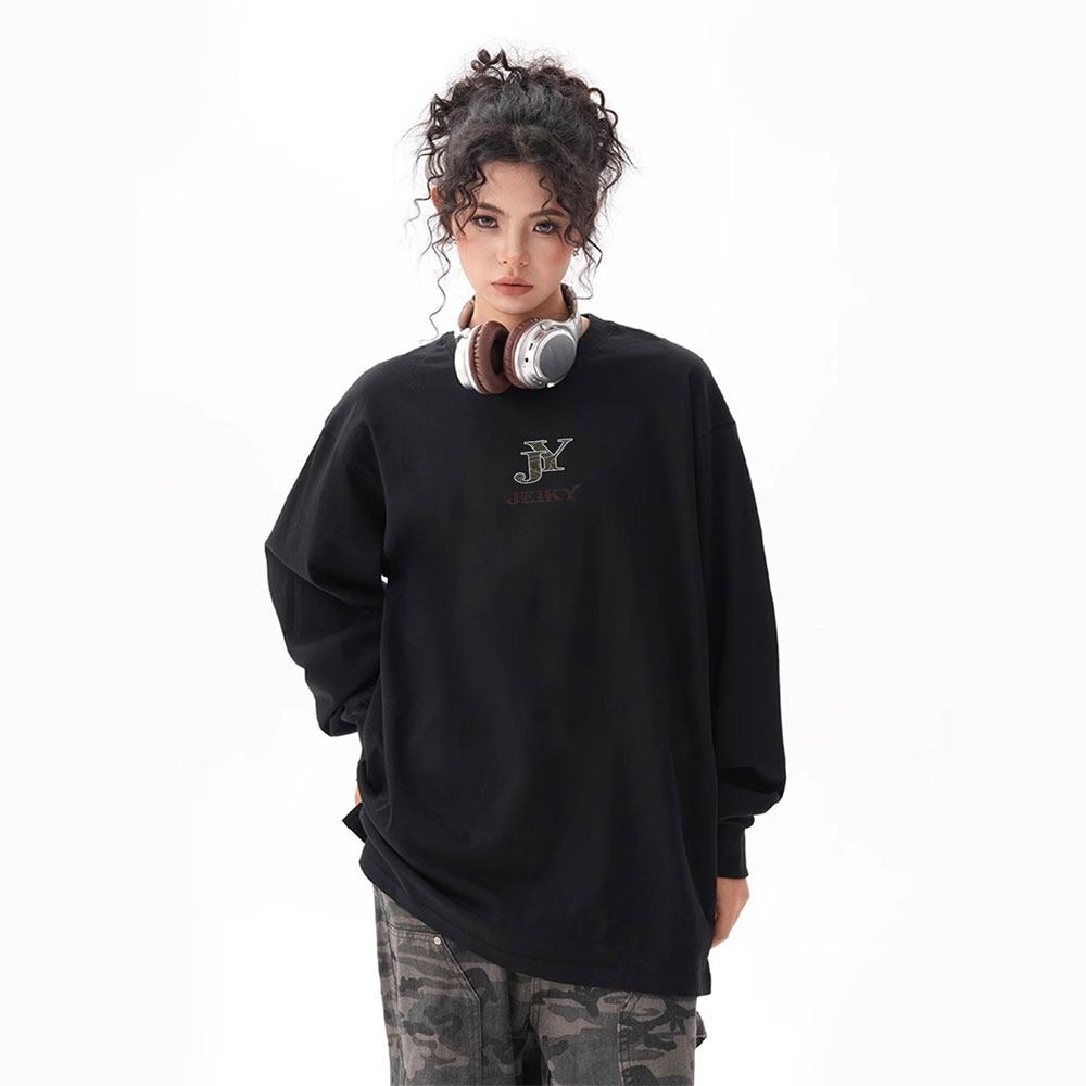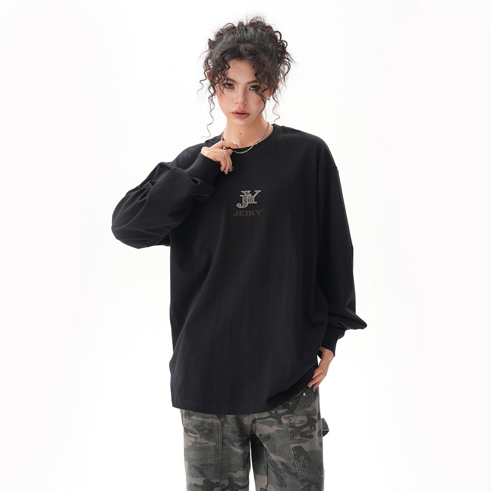 JY JEIKY Loose casual bottoming shirt for men and women, solid color round neck long sleeve T-shirt